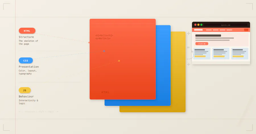 Когда вы открываете веб-страницу, за кулисами совместно работают три ключевые технологии: HTML, CSS и JavaScript. У каждой своя роль, и понимание того, как они взаимодействуют, необходимо каждому, кто хочет создавать или поддерживать веб-сайты.